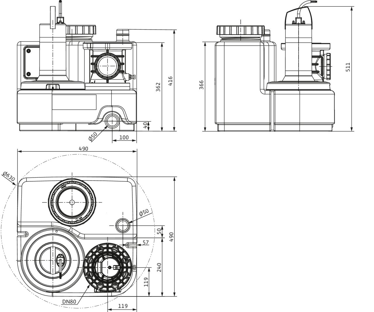 De opvangtank is zowel luchtdicht als waterdicht met een schuin inlaatverzamelgebied. Dankzij het doorzichtige deksel en de reinigingsopening op de terugslagklep zijn onderhoud en reiniging eenvoudig. Hoge betrouwbaarheid wordt gegarandeerd door roestvrij materiaal van technische kunststoffen en roestvrij staal. Een groot voordeel van het apparaat is de hoge doorstroming, groot inschakelvolume, thermische motorbescherming en alarm. Het niveau in de tank wordt gemeten met een analoog uitgangssignaal van 4...20 mA.