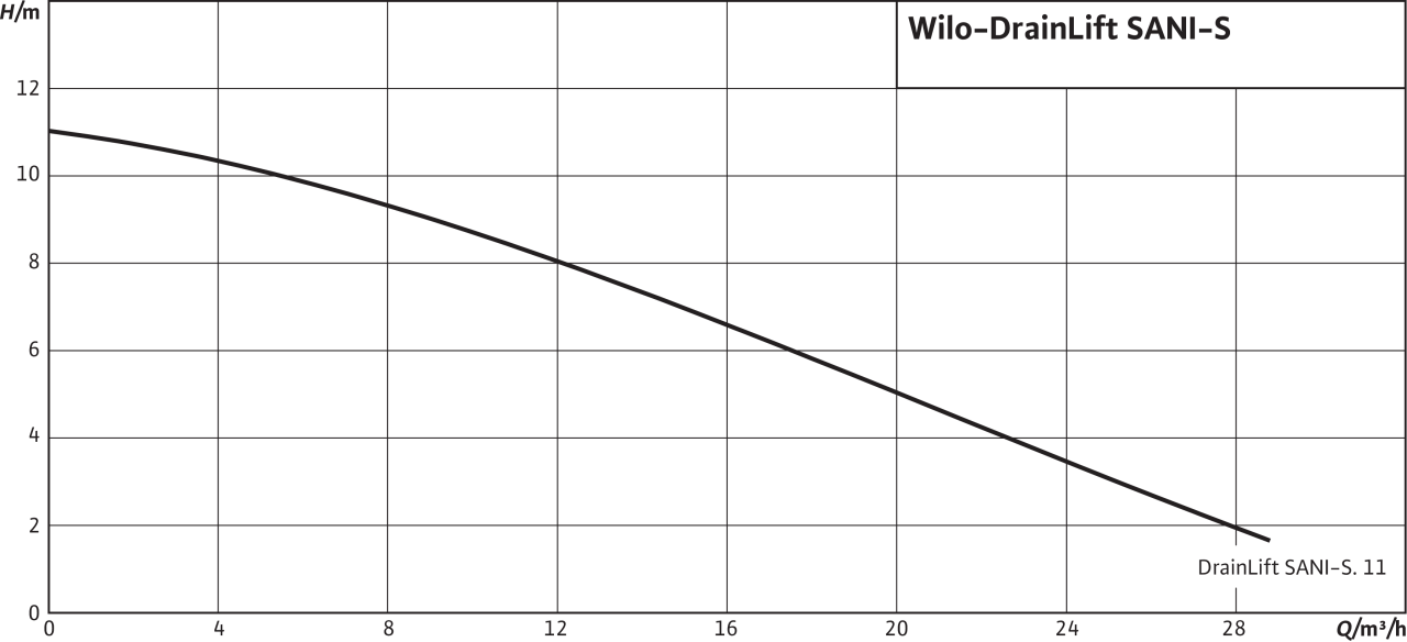 Apparaat voor het verpompen van afvalwater Wilo Drainlift SANI-S. Opvoerhoogte 11 m, voeding 400 VAC. Meer informatie