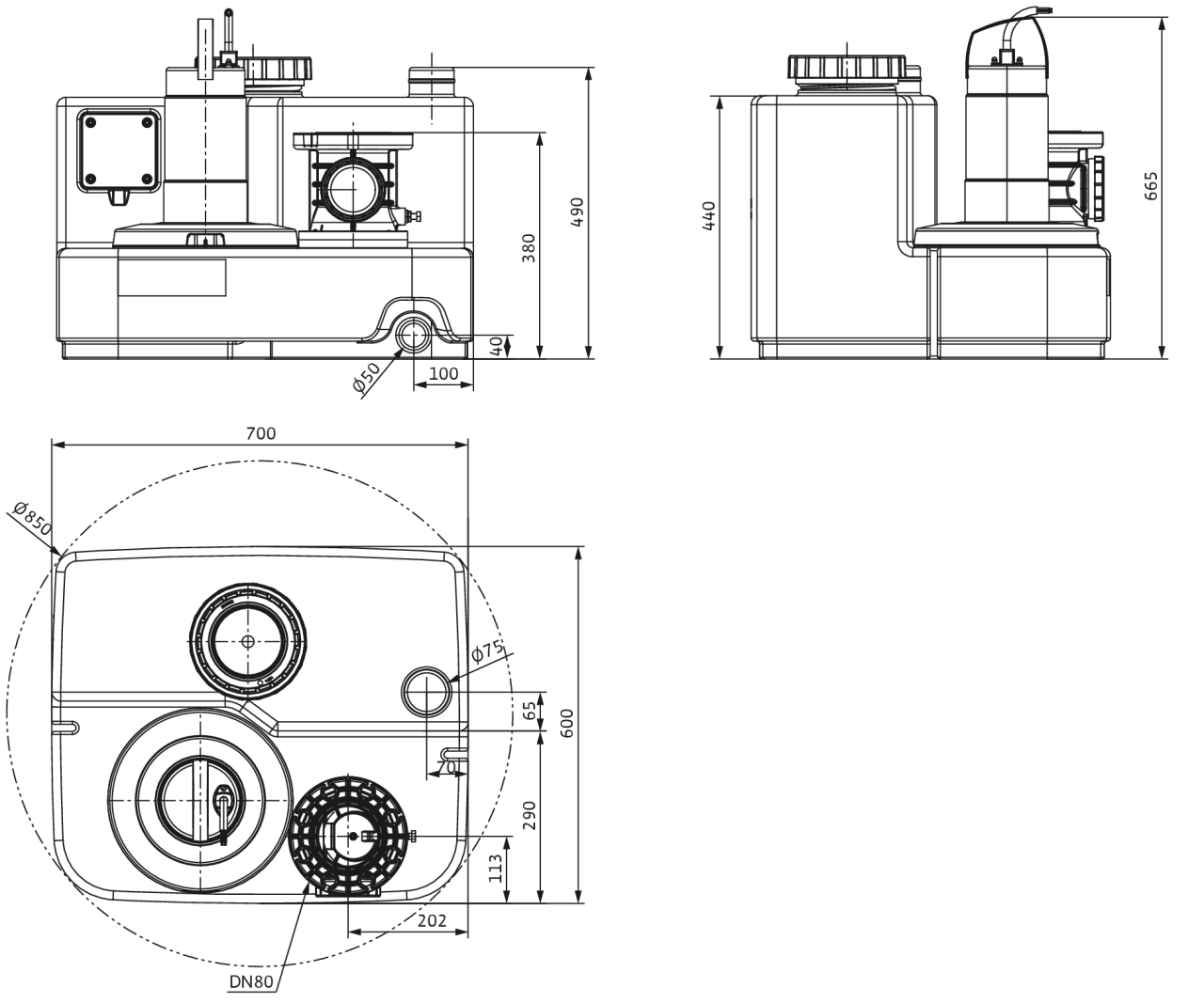 De verzamelcontainer is zowel luchtdicht als waterdicht met een schuin instroomoppervlak. Dankzij het transparante deksel en de reinigingsopening op de terugslagklep zijn onderhoud en reiniging eenvoudig. Hoge betrouwbaarheid wordt gegarandeerd door roestvrij materiaal van technische kunststoffen en roestvrij staal. Een groot voordeel van het systeem is de hoge doorstroming, groot schakelvolume, thermische motorbescherming en autonome alarm. Het niveau in de tank wordt gemeten met een niveausensor met een analoge uitgang van 4...20 mA.