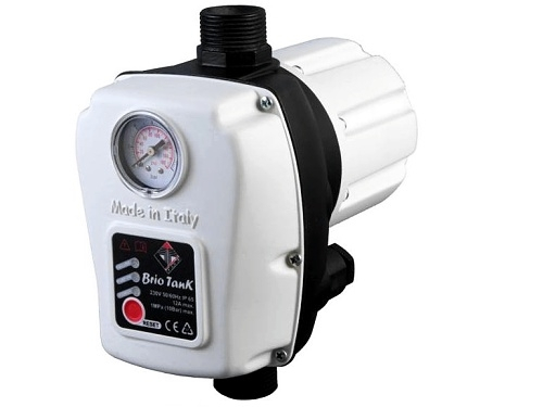 De doorstroomschakelaar BRIO TANK schakelt automatisch de pomp in of uit bij het openen respectievelijk sluiten van de waterkraan. Een andere belangrijke eigenschap van de schakelaar is de bescherming tegen drooglopen bij onvoldoende wateraanvoer, overschrijding van de toegestane zuighoogte en bij lekkages in de leidingen.