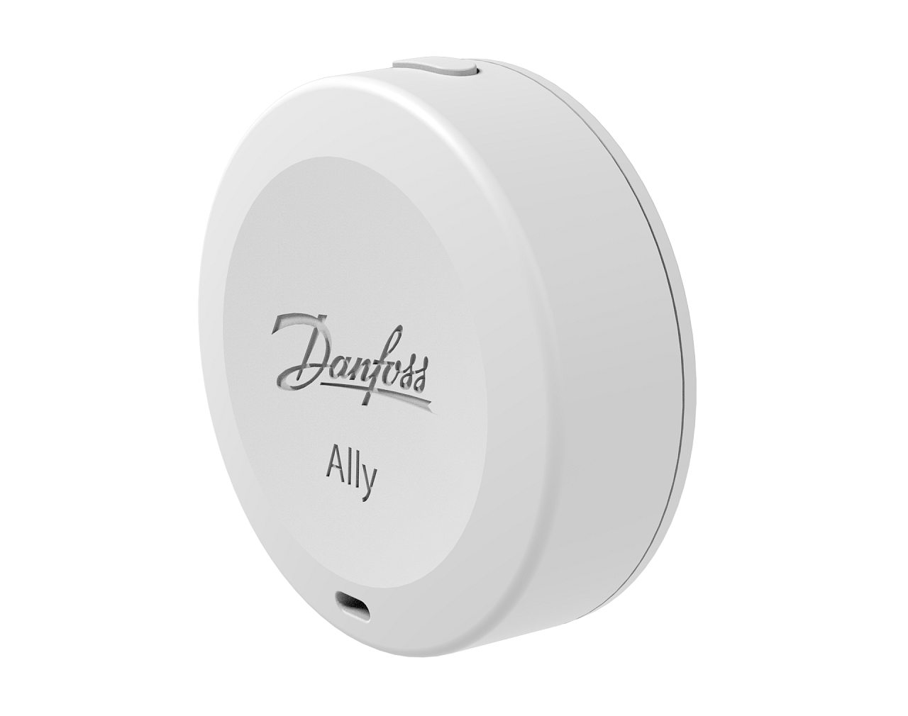 De draadloze kamersensor is bedoeld voor het meten van de temperatuur in een ruimte. Het behoort tot de familie voor slimme verwarming Danfoss Ally. Het meet de temperatuur en vochtigheid in de ruimte en stuurt deze via de Zigbee-interface naar de centrale eenheid Danfoss Ally Gateway naar de applicatie op de mobiele telefoon. Het is ook ideaal als externe sensor voor radiatorkranen die op afgedekte radiatoren zijn gemonteerd.