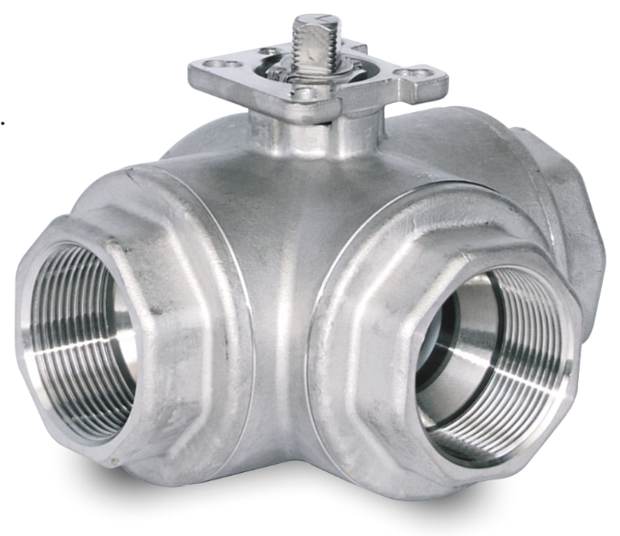 Drieweg kogelklep VL321L met T-type boring, PN63, DN 50, PTFE, max 190°C. Meer informatie