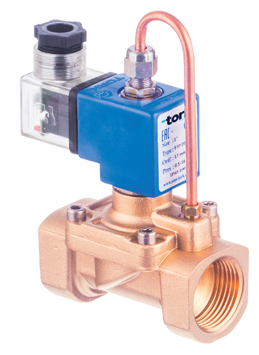 Elektromagnetische klep voor water en vloeistoffen TORK T-GHA105 DN 25, spanningsloos open, max 40 bar. Meer informatie