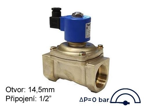 Elektromagnetische klep met hulplift TORK T-ZR103 (S1000) DN 15, opening 14,5 mm, 230 VAC, aansluiting 1/2", druk 0-16 Bar, spanningsloos gesloten. Meer informatie