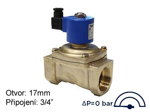 Elektromagnetische klep met hulplift TORK T-ZR 104 DN 20, opening 17 mm, 24 VDC, aansluiting 3/4", druk 0-16 Bar, spanningsloos gesloten. Meer informatie