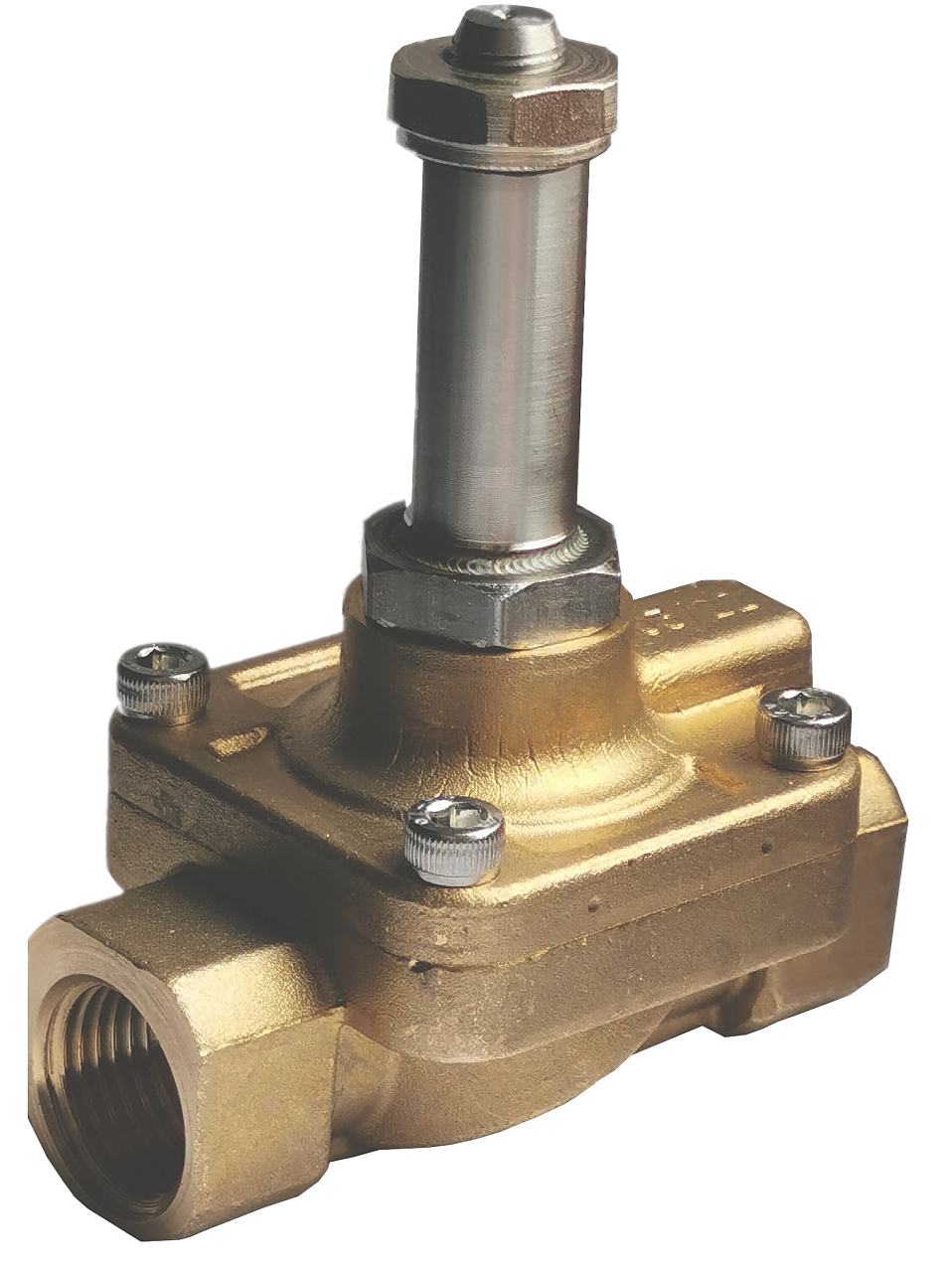 Solenoïdeventiel TORK. Het ventiel is bedoeld voor gebruik met heet water en stoom. Het ventielhuis is gemaakt van messing, de interne onderdelen van roestvrij staal. Het solenoïdeventiel wordt geleverd zonder spoel.
