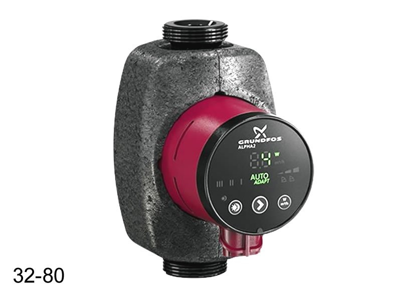 Elektronische circulatiepomp Grundfos ALPHA2 32-80. Voor gebruik in verwarmingssystemen. Meer informatie