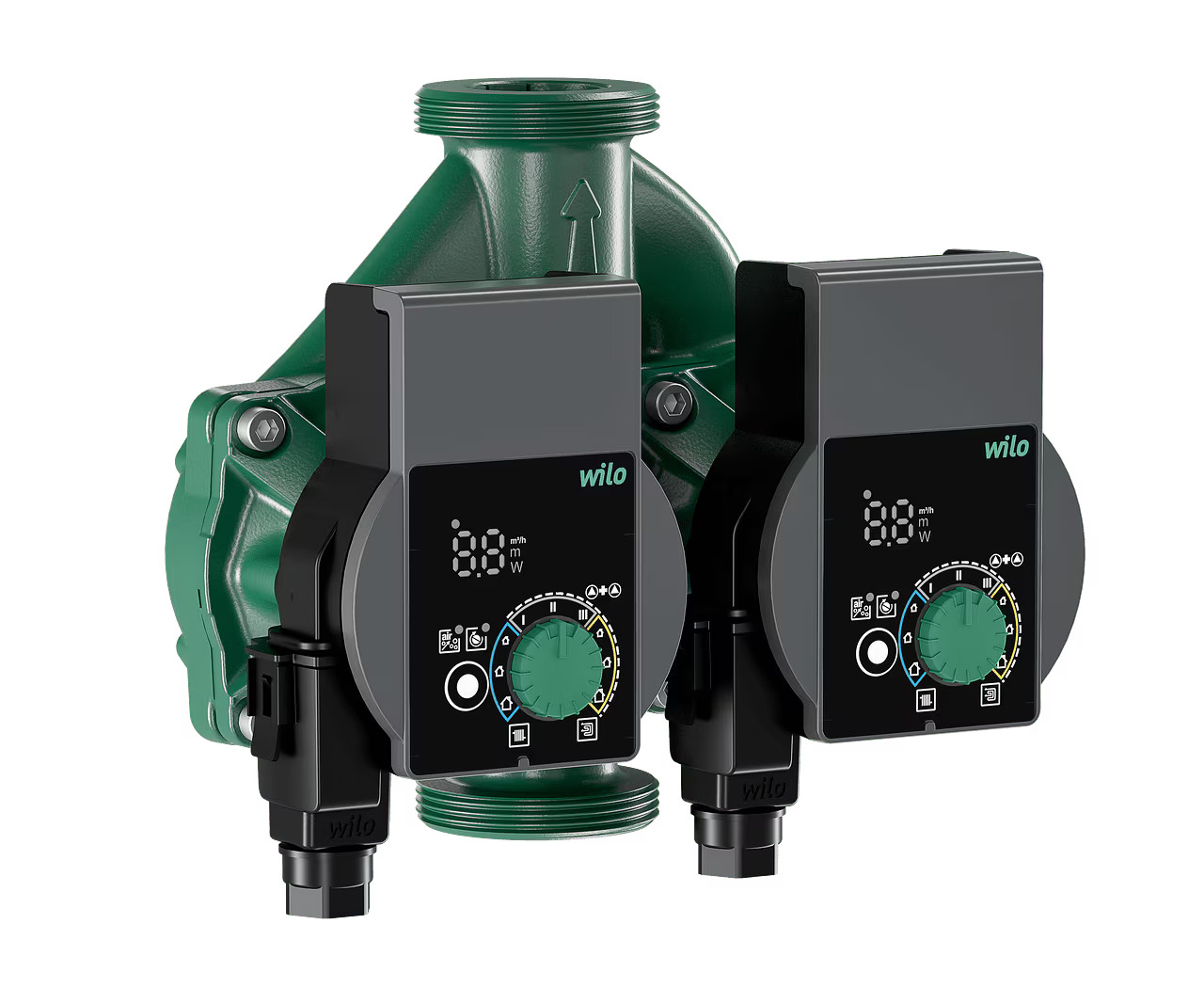 De pomp maakt werking in hoofd/reserve modus of parallelle werking mogelijk om piekbelastingen te dekken. Dankzij het LED-display heeft u een overzicht van de actuele doorstroming, opvoerhoogte en energieverbruik. De pomp is uitgerust met functies voor eenvoudige ontluchting en automatische herstart.