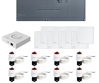 Regelaars werken op een spanning van 24 V en zijn verkrijgbaar in twee uitvoeringen: met 10 of 15 uitgangen voor thermische aandrijvingen. Thermische aandrijvingen zijn geïnstalleerd op elke kring van de vloerverwarming en worden bedraad aangesloten op de regelaar. Thermostaten kunnen op twee manieren worden aangesloten. De eerste is bedraad, waarbij de regelaar met de thermostaat wordt verbonden via een kabel. Voor de tweede - draadloze aansluiting zijn draadloze versies van thermostaten en een radiomodule nodig die draadloze communicatie tussen de thermostaat en de regelaar mogelijk maakt.