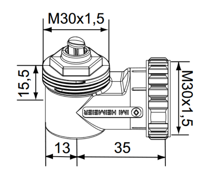Hoekverbinding IMI M30x1,5 voor radiatoren en thermostatische koppen. Meer informatie