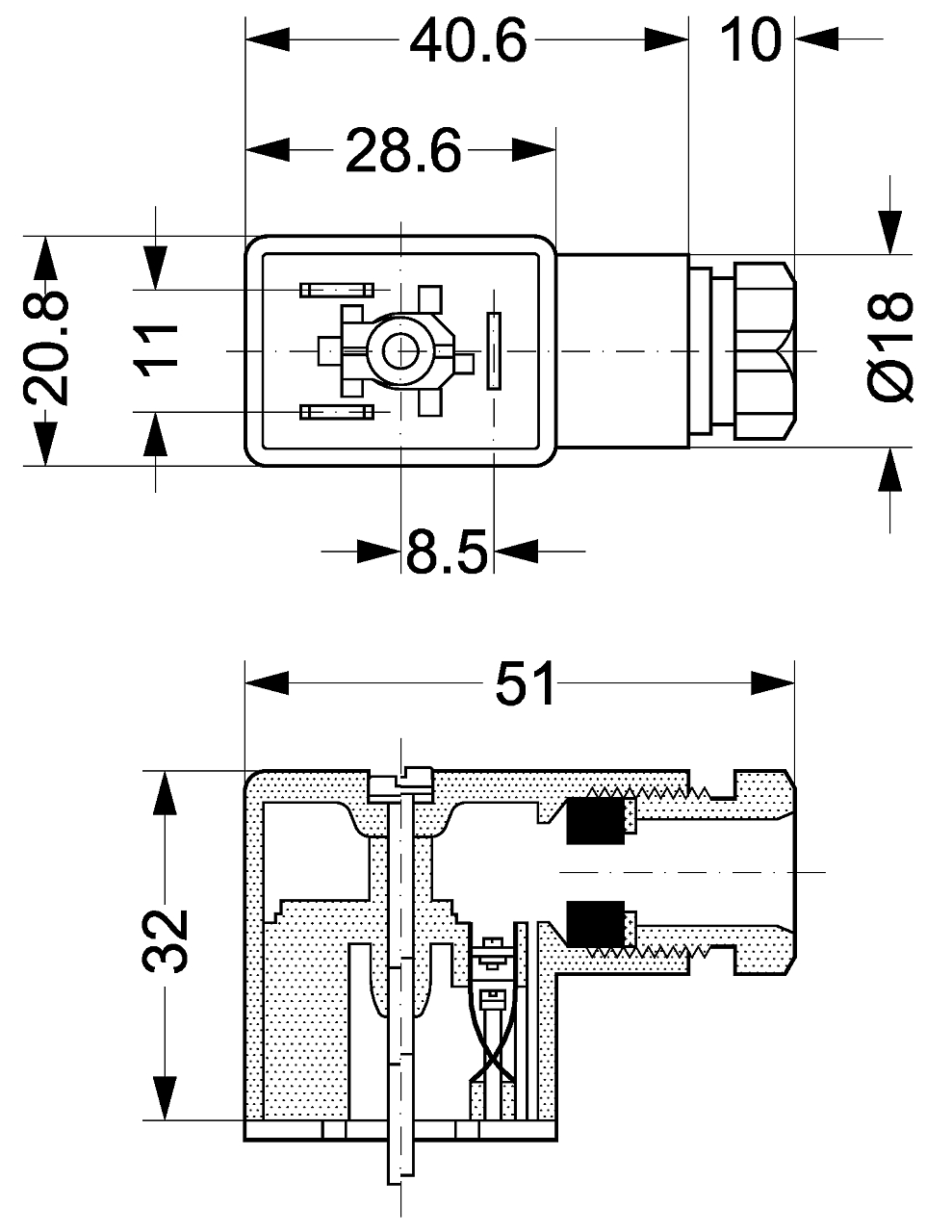 Kabelconnector voor Danfoss 9-22 AB/AC spoel.