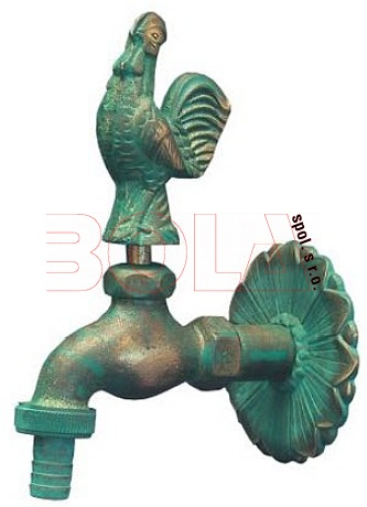 Nostalgische uitloopkraan met haanmotief. Geschikt als accessoire voor huis en tuin.