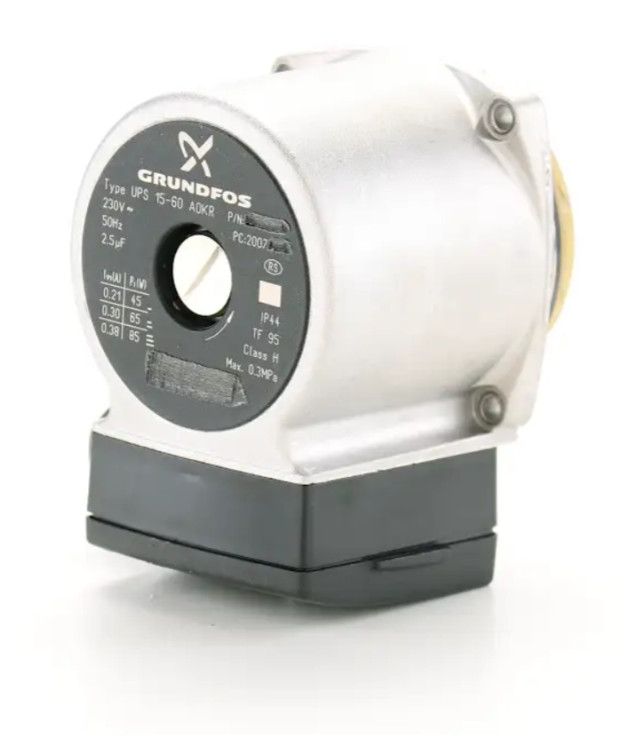 Pompkop Grundfos UPS 15-60 met een opvoerhoogte van 6 m.