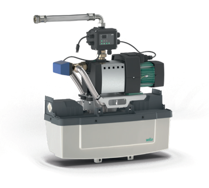 Het automatische pompsysteem Wilo RAIN 1 met zelfaanzuigende pomp voor het gebruik van regenwater in toepassingen waar het gebruik van drinkwater niet nodig is. De compacte constructie maakt eenvoudige en onmiddellijke aansluiting en ingebruikname mogelijk. Bovendien beschikt het apparaat over automatische beschermingsfuncties zoals niveaubewaking en droogloopbeveiliging, continue drukindicatie in het apparaat en een geheugen voor de laatste 10 storingen. In geval van een tekort aan regenwater schakelt het apparaat over naar een secundaire bron.