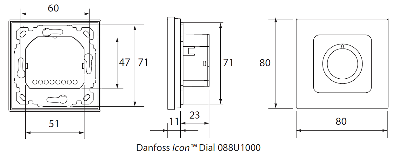 De moderne ruimtethermostaat Danfoss Dial, behorend tot de Danfoss Icon-familie, reguleert vloerverwarming met behulp van een draaiknop, waarmee de gewenste temperatuur in het bereik van 5-30 °C nauwkeurig kan worden ingesteld. Hij kan zelfstandig worden gebruikt of worden aangesloten op de Master Controller. Via de relaisuitgang kan hij tot 5 thermo-elektrische aandrijvingen aansturen. De knop kan worden verwijderd en voor het instellen van het gewenste temperatuurbereik kunnen beperkende pinnen worden gebruikt. Er is een ingebouwde vorstbeschermingsfunctie (5 °C).