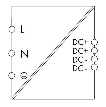 Geswitchte voeding WAGO ECO met een uitgangsspanning van 24 VDC, 1,25 A. Afgedekte uitvoering ideaal voor installatie in schakelkasten, montage op DIN35 installatielijsten mogelijk in verschillende posities. Montage direct op de verdeelplaat mogelijk met behulp van een schroefoog.