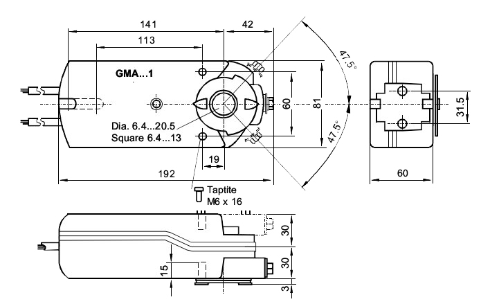 Servomotor voor luchttechnische kleppen GMA 321.1E. Meer informatie