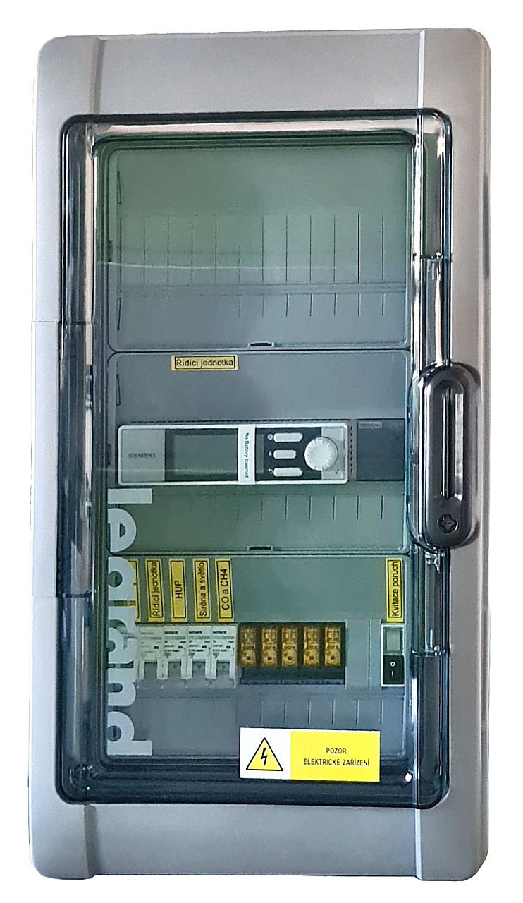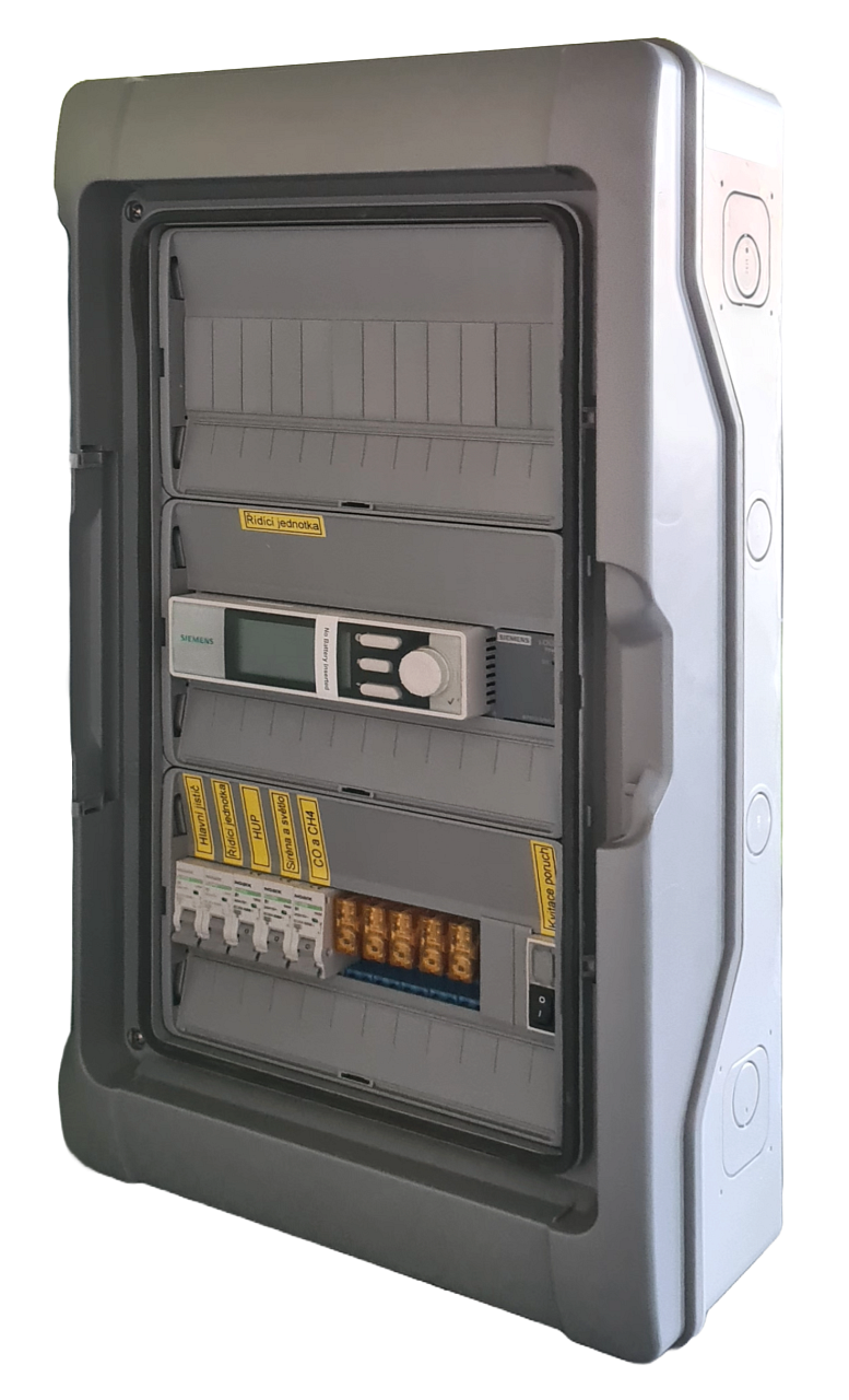 Storingssignaleringsset Siemens Kotelník 2 in verdeelkast PSKVR-MB is een systeem van hoogwaardige componenten van toonaangevende fabrikanten van elektrische componenten. Het set dient voor de volledige beveiliging van een veilige werking in ketelhuizen boven 100 kW volgens norm ČSN 07 0703. Het apparaat maakt het mogelijk om verschillende parameters van het verwarmingssysteem te monitoren, waardoor tijdige detectie van potentiële problemen wordt gewaarborgd en een veilige werking wordt gegarandeerd.