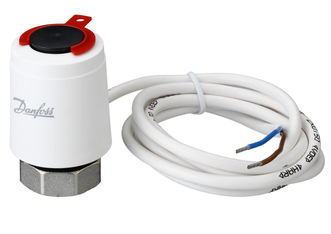 De servomotor TWA-K wordt gebruikt in combinatie met Danfoss ventielen met een schroefdraad van M30 x 1,5 en VK-radiatoren. Dankzij de geïnstalleerde visuele indicatie toont de aandrijving in welke positie de aangesloten klep zich momenteel bevindt (gesloten/open). In geval van stroomuitval sluit de aandrijving de klep automatisch. De servomotor wordt gevoed door een kabel van 10 m lang.