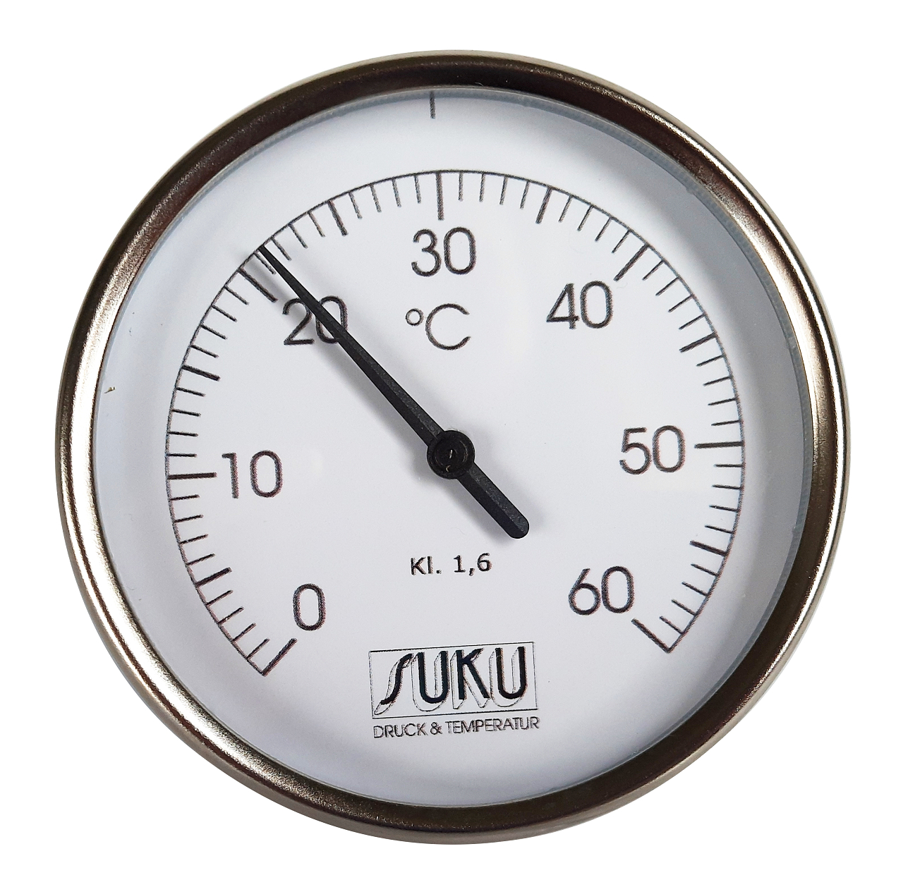 Bimetaalthermometer SUKU, D 100, L 45, 0-60°C + dompelbuis 1/2. Meer informatie