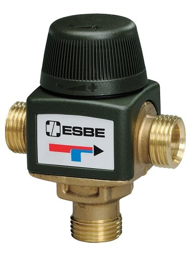 Thermostatische mengklep ESBE. Instelbaar temperatuurbereik 35-60 °C. Afmeting DN 15, aansluiting buitendraad G 1/2". Meer informatie