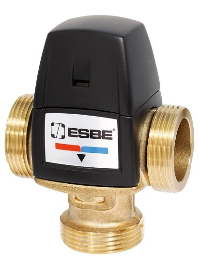 Thermostatische mengkraan ESBE. Instelbaar temperatuurbereik 50-75 °C. Afmeting DN 25, aansluiting buitendraad G 1 1/4" Meer informatie