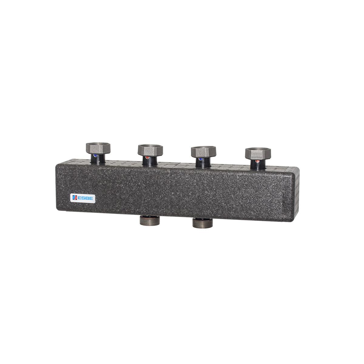 Verdeler voor pompgroepen met aansluitmaat DN 25-32 van de serie GxA100. Wordt geleverd in een isolatiebehuizing en met beugels voor wandmontage. De verdeler is kleurgecodeerd om de installatie zo eenvoudig mogelijk te maken.