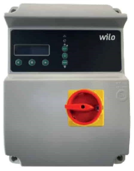 Universele schakelkast voor Wilo-pompen die bescherming biedt tegen drooglopen, overbelasting, fouten door frequent schakelen, blijvende storingen die de werking belemmeren, onder- en overspanning, fasering.
